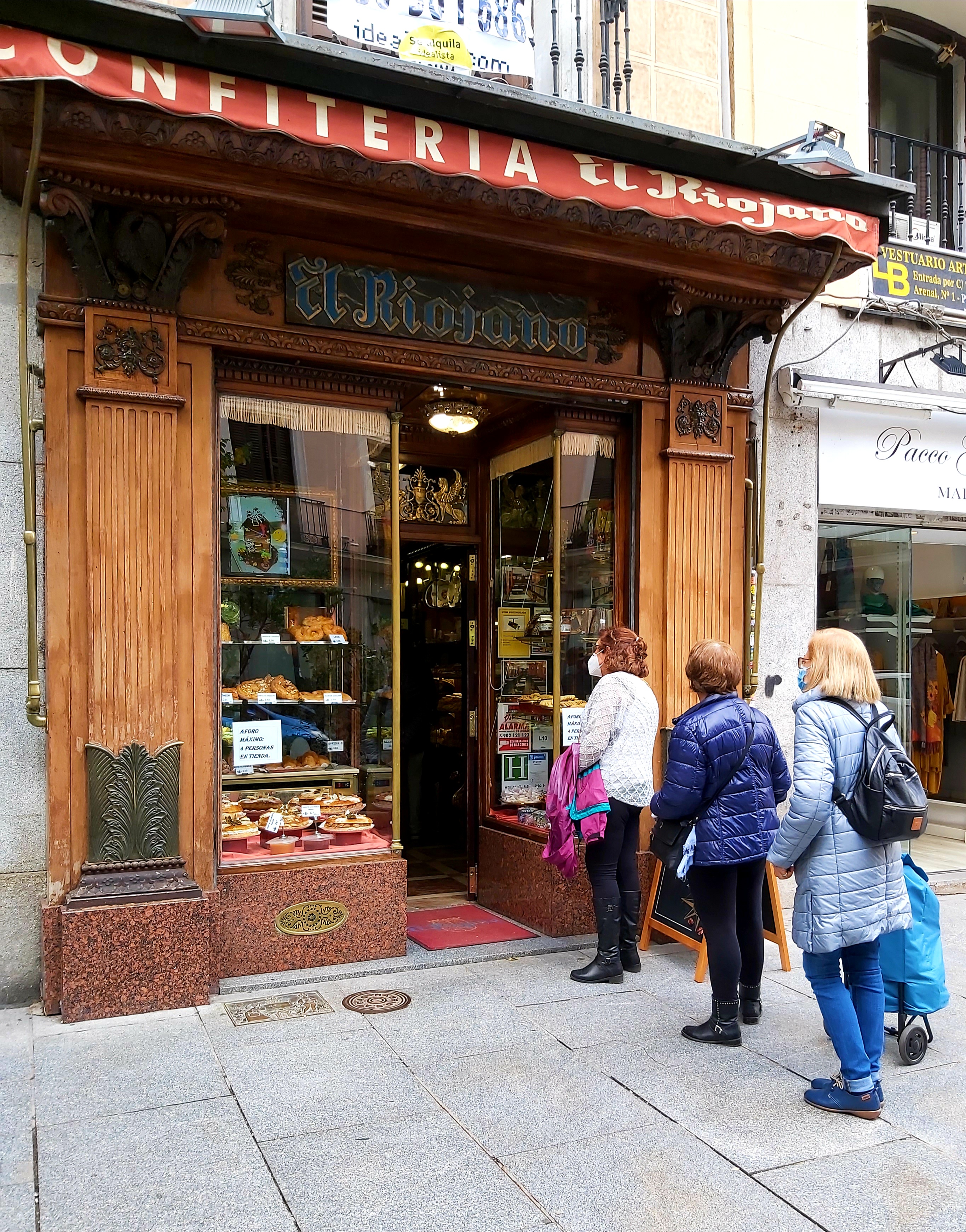 El Riojano es una pastelería cercana a la Plaza Mayor y muy visitada el Día de la Almudena ya que vende la Corona de la Almudena, el dulce típico de la festividad.